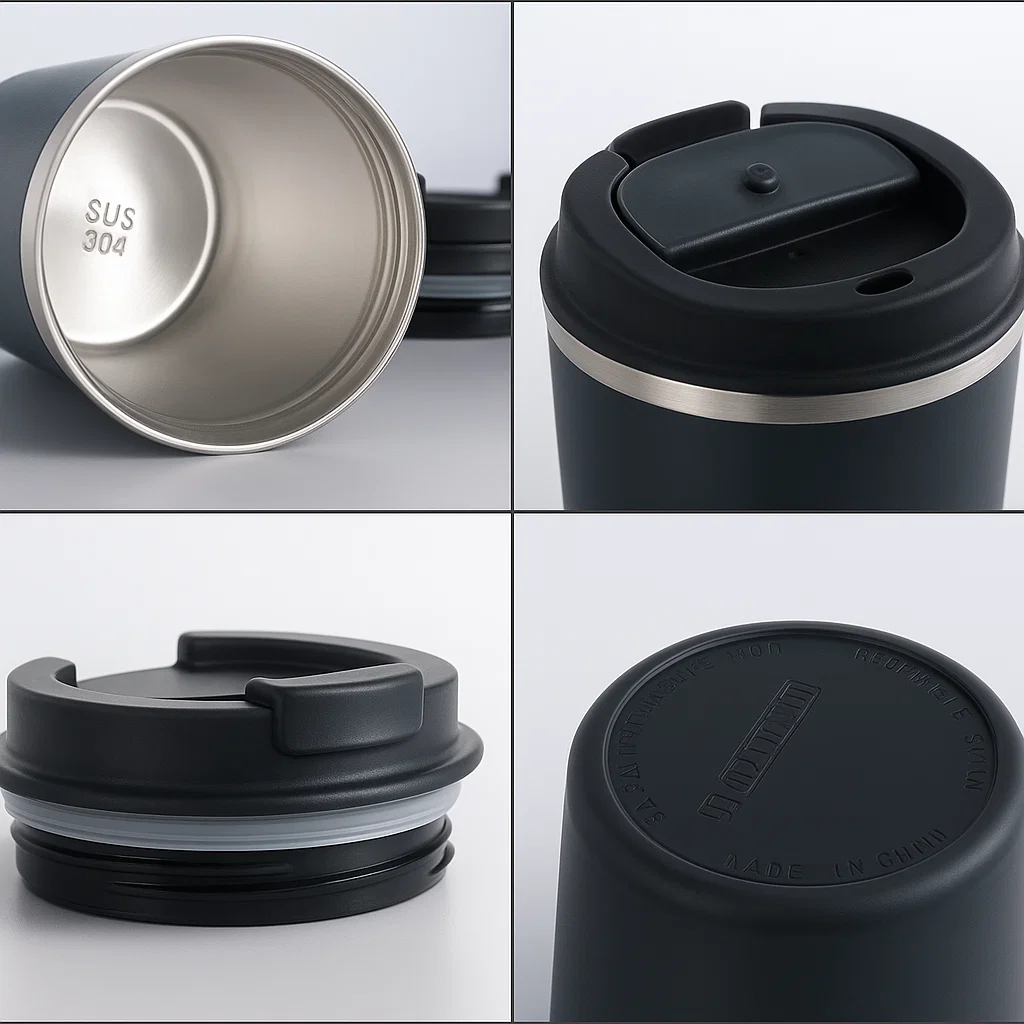 يأتي الغطاء مزودًا بسدادة سيليكون محكمة الإغلاق تمنع التسرب والانسكاب تمامًا، مع فتحة تهوية ذكية تضمن تدفق المشروب بسلاسة. كما أن القاعدة المطاطية تمنع الانزلاق أو الانقلاب أثناء الاستخدام. تصميم نحيف وسعة 380 مل يجعله مثاليًا للرحلات، المكتب، المدرسة، أو حتى أثناء التنقل، كما أنه يناسب معظم حوامل الأكواب في السيارة.
