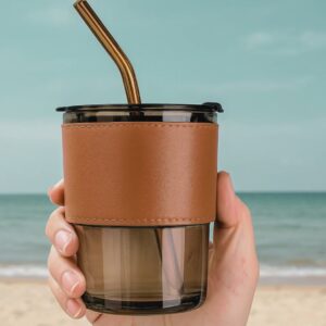 كوب زجاجي شفاف – متين و أنيق لجميع المشروبات – بني